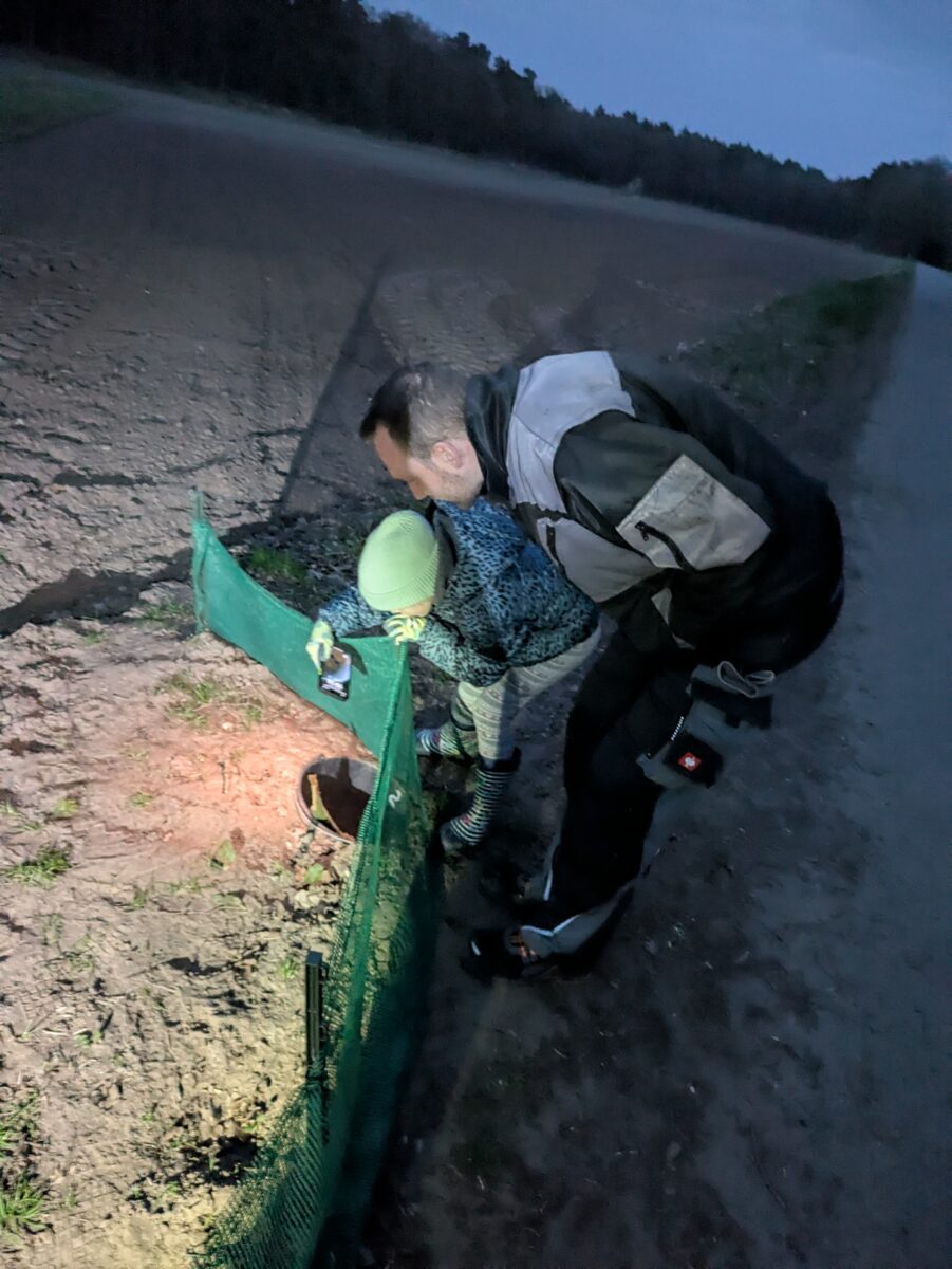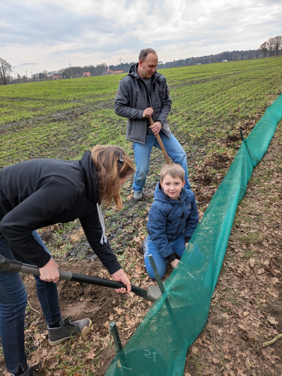 Dann sind wir im Februar richtig aktiv geworden und haben an einem Samstagvormittag, zusammen mit vielen anderen fleißigen Helfern, die Krötenschutzzäune aufgebaut. Das Buddeln und die gemeinsame Zeit mit ihren Eltern, haben den Kindern an diesem Tag besonders gut gefallen.